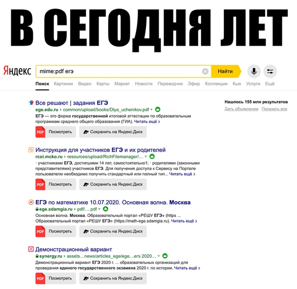 А во сколько лет вы узнали, что если в поисковике после mime: ввести тип файла (без пробела) и название, то тебе сразу выдаст файлы нужного типа? Например, pdf с заданиями по ЕГЭ или ppt на урок (презентация в PowerPoint).